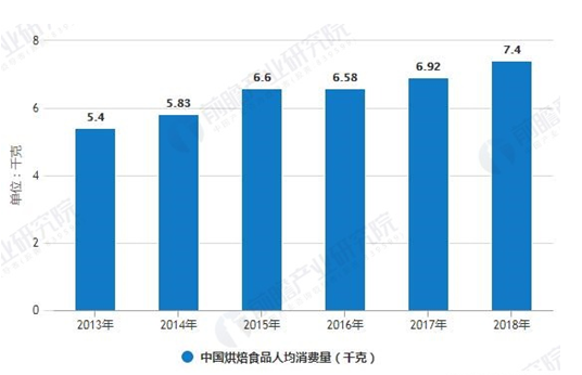 2013-2018年中國烘焙食品人均消費量統(tǒng)計情況